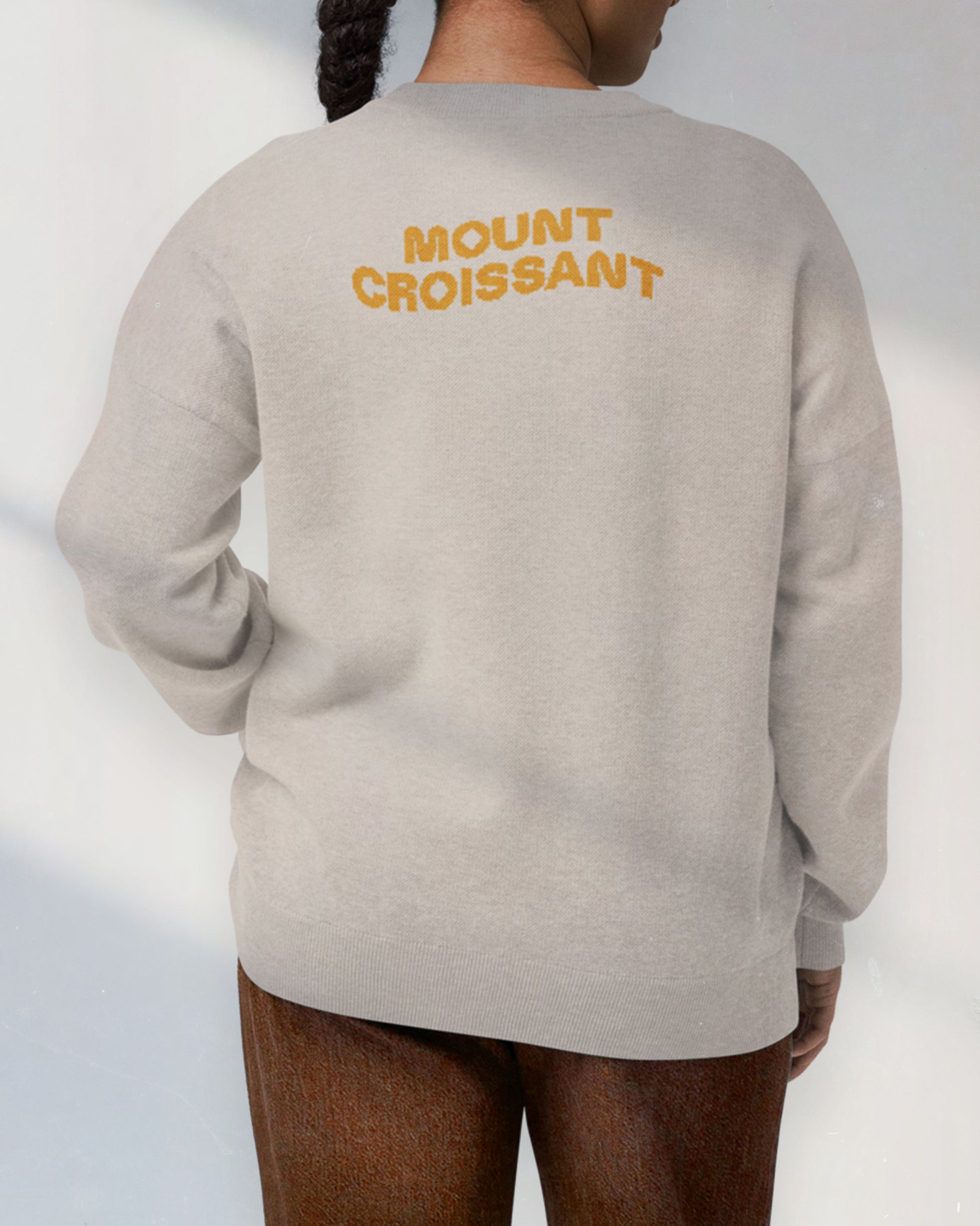 A cozy knitted sweater featuring a palmier, inspired by the warmth, comfort, and simple pleasures of Parisian bakeries.